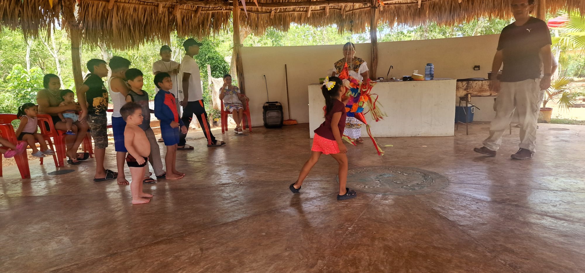 Im Anschluß sind wir zum Dorfplatz gefahren und haben viele Geschenke für die Mayakinder übergeben. Das Schlagen der Pinata hat den Kindern viel Freude bereitet. Uns wurde gezeigt wie man Tacos zubereitet und ein typischer Folkloretanz wurde für uns und mit uns getanzt. Das war ein wunderschöner und ereignisreicher Tagen zwischen 2 Kulturen.
